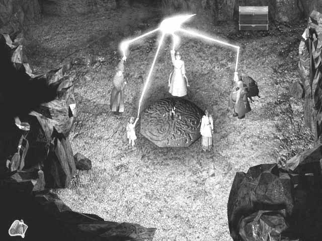 ●取七修剑时需要将洞内所有闪光石头关闭才能打开瀑布拿到宝剑,如下图,第一次点白色的五星,第二次点黑色的五星,第三次点白色的圆圈即可取到宝剑。