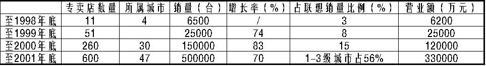 在中国,较早实施特许经营销售模式的是中国电脑行业的“领军人物”—联想集团。1998年8月联想集团分别于北京、上海、广州三地创建了六家联想1+1特许专卖店,经过两年多的实践努力,联想集团已经建立起了中国规模最大、运营最为规范的特许专卖店体系。在联想的带动下方正、清华同方、连邦软件等IT企业相继踏上了特许经营道路,特许经营已经真正地走入了中国IT行业,这些专卖店在为厂家带来巨大的利益的同时,也表明了特许经营在中国全面发展的黄金时期已经到来。