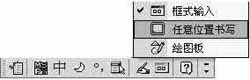 (2)激活手写识别功能:Word XP的手写识别功能是以微软拼音输入法3.0为基础的,你要使用手写识别功能,首先需要打开微软拼音输入法3.0,然后就能在微软拼音输入法3.0的输入法提示条上看到一个“手写”按钮,单击该按钮,系统会弹出一个由“框式输入”、“任意位置书写”和“绘图板”三个命令组成的快捷菜单(如