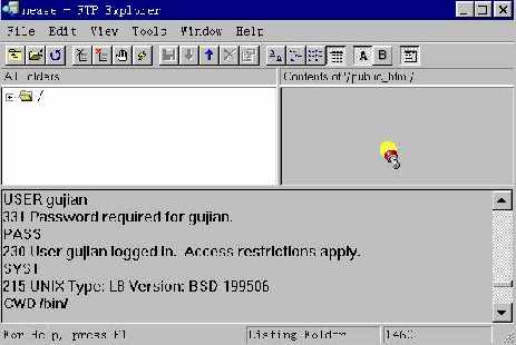 FTP Explorer除了具备下载文件的功能外,还可以管理你的个人站点。以我在网易的个人站点为例,启动FTP Explorer弹出FTP站点列表时,在Host项中填入你要连接的地址(网易的为www.nease.net),再在login项与Password项中填入你的登录姓名与密码(注意:这时的登录方式不是常用的匿名方式),再点击Connect即可与你的主机进行连接。在与你的主机连接成功后,可使用FTP Explorer的上装和下载功能对你的个人站点进行管理,其方法与用资源管理器管理本地硬盘十分相似,在这一点上,FTP Explorer相比GetRight和Go!Zilla有很大的优势。