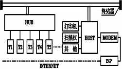 在设计网络结构时,要考虑其成本、扩充性、安装维护是否方便等。综合这些因素,在以太网与令牌网两种结构类型中,笔者建议选择以太网,这是因为以太网的组成较为简单,便于非专业人员的日常维护。鉴于各工作站独立工作及协同工作的双重要求,工作站微机间的连接采用星形拓扑结构,在主计算机(HOST)与工作站间采用总线结构,以增强多用户访问时的可靠性,保证一定的传输速率。