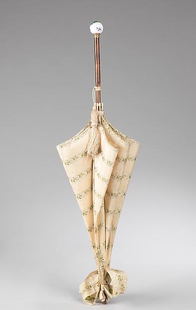 这种阳伞的时尚特征之一是球柄,这是19世纪80年代最流行的款式之一。此外,这把阳伞除了作为装饰配件外,还可以起到遮阳伞的作用。