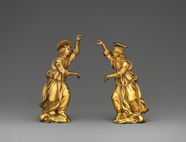| 介绍(英) | The angels, of a brassy metal, show well-preserved mercury gilding, burnishing, and some corrosion and rubbing. A faithful affirmation of quattrocento standards of modeling, as in the works of Antonio Pollaiuolo, Andrea del Verrocchio, Benedetto da Maiano, and their many emulators, is clear. The costumes, with ample peplums, rolled-back sleeves, and skirts curling up at the ankles, also exhibit a thorough understanding of current imagery. It is a favorable sign that the features and hairstyles do not match: the right-hand angel, with a longer, oval face, wears a finely faceted bandeau on his forehead. It may seem surprising in terms of the quattrocento that the two stand on rockery, not clouds, but then their original appearance and function are unclear and had been forgotten by the time they came to The Met.