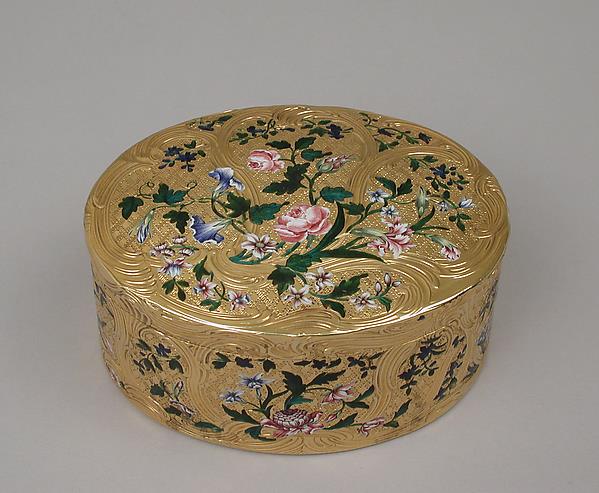 | 介绍(英) | In eighteenth-century Europe, Paris led the production of high-quality luxury goods. Parisian goldsmiths made a wide range of small, personal articles such as snuffboxes; étuis to hold sealing wax, tweezers, or utensils for sewing; souvenirs, which contained thin ivory tablets for note taking; and shuttles for knotting lace. Gold snuffboxes and boxes decorated with portrait miniatures were prized and frequently given as royal gifts, often to ambassadors or members of the court in lieu of cash payments for their services. Coveted and admired, these boxes were produced from a variety of materials. The best were skillfully made of gold and embellished with diamonds, enameled decoration, lacquer, and other luxurious materials. By the middle of the century, the taking of snuff had become an entrenched social ritual, and the snuffbox, too, had become an important social prop. Snuffboxes were considered highly fashionable accessories, with some merchants advertising new boxes with each change of season. The popularity of snuffboxes extended to all levels of society, and for those who could not afford gold, boxes were produced in less expensive materials such as silver, tortoiseshell, porcelain, or domestically produced lacquer.