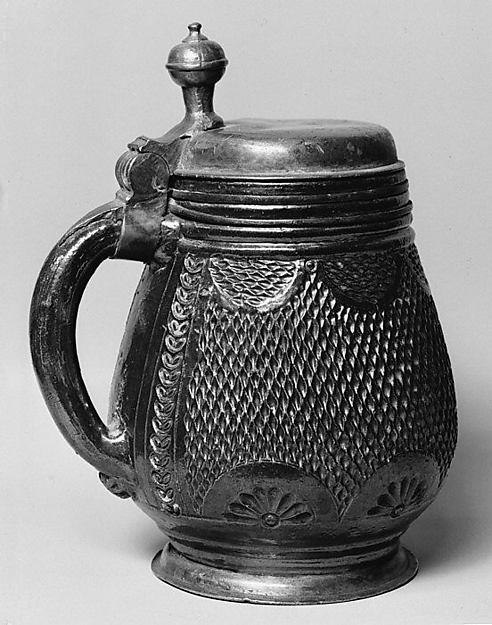 German stoneware tankards were brought to America in large numbers on Dutch fur-trading ships. Shards of these popular vessels have been uncovered at seventeenth century sites in New York and New England.