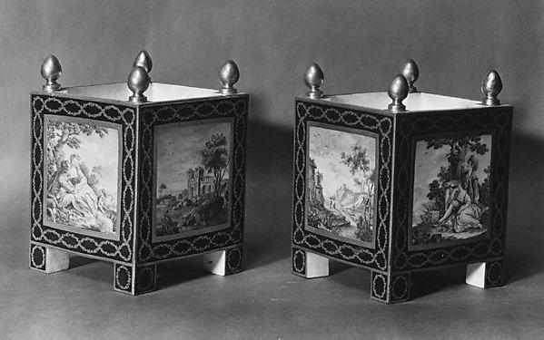 Works of art by the French artist François Boucher (1703–1770), who held the prestigious title of first painter to the king, served as a highly popular source of inspiration for artists working in a variety of media in the middle decades of the eighteenth century. Prints made after paintings by Boucher were widely circulated and provided artists with compositions that could be faithfully reproduced in smaller scale or adapted to three-dimensional porcelain sculpture. Works by Boucher served as the source not only for the painted scenes on vases and snuffboxes, but also for the porcelain figures which were listed as "Enfants Boucher" (Boucher Children) in the factory’s sales ledgers.