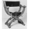 The form of this chair is derived from the ancient Greco-Roman faldistorium, an armless folding chair used by high-ranking officials when not occupying their thrones of office. Although the present chair also appears to be collapsible for easy transport, its X frame is not constructed to permit this. Clearly, the form has been retained to evoke its traditional ceremonial aspect.