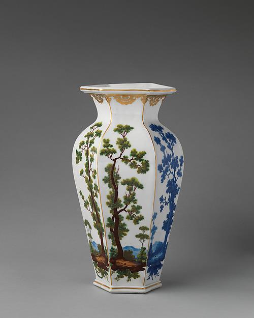 The unusual decoration, alternating landscapes in blue and the colors of nature, is attributed to an itinerant painter "Socquet" (active 1753–73), about whom little is known.