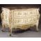 The decoration, gilded carving on a milky white ground, would have corresponded closely with the carved woodwork décor of the room in which it stood, for such commodes, like console tables, were made to complement their surroundings. A French-trained architect, François de Cuvilliès (1695–1768) provided designs of similar commodes intended for Bavarian rococo palaces.