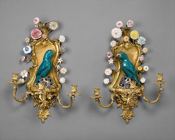 法国和中国制造的瓷器与法国镀金青铜的结合将使这些壁灯在十八世纪中叶非常流行。