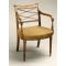 这把异常宽的卷轴靠背扶手椅采用邓肯·菲夫(Duncan Phyfe,1768-1854 年)的风格,但带有法国移民橱柜制造商查尔斯-奥诺雷·兰努耶的双语印刷标签的碎片。它是许多已知的纽约例子中唯一一个通过标签或签名记录到特定商店的卷轴椅。
