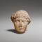 The head is mold-made and solid. It is broken around the jaw, preserving only the face and hair; the back of the head is missing.