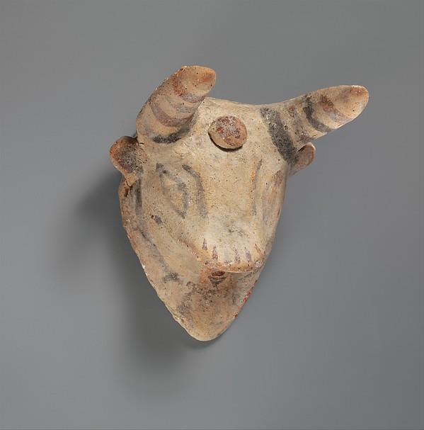 正如周围的物体所表明的,公牛的面具在古塞浦路斯的仪式中占有重要地位。像这样的一个例子会被奉献给一个避难所。