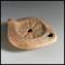 Vessberg Type 19. Mold-made, with unpierced handle. Discus: indistinct radiating linear depressions decorated with herring-bone patterns, interspersed with impressed circles; a single filling hole slightly off-center. Plain, sloping shoulder. Undefined, slightly concave base.