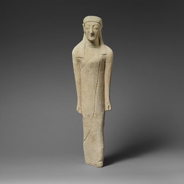 一位身着希腊服装的无胡须男性信徒的石灰石雕像