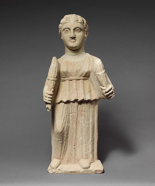 阿尔忒弥斯(?)的石灰石雕像,手持两个火炬