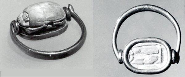 Egyptian scarab of paste, vase with two spouts pouring water.