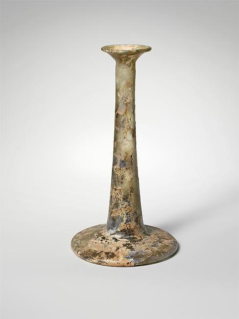 圆形边缘,压入扩口的侧面;高圆柱形颈部,向下张开;宽而平的身体侧面向外急剧扩张;宽的,推入底部