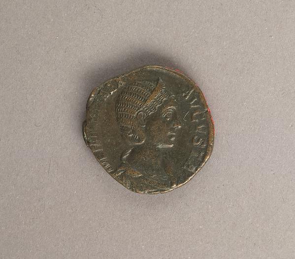 IVLIA MAMAEA AVGVSTA,Iulia Mammaea(皇帝的母亲)/VENVS FELIX SC的垂饰半身像,维纳斯坐着,手里拿着小雕像和权杖