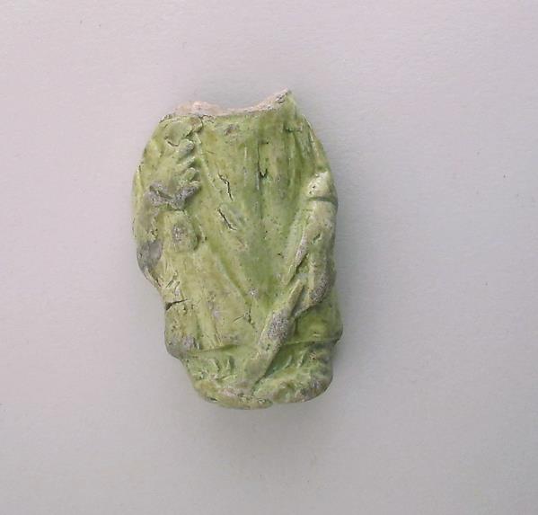 穿着厚重衣服的无头绿色搪瓷小雕像。