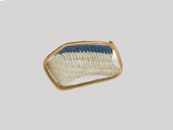 高: 13/16 × 1 7/16 × 1/16 英寸 (2.1 × 3.6 × 0.2 厘米); estimated diam. of rim: 3 15/16 英寸 (10 厘米)