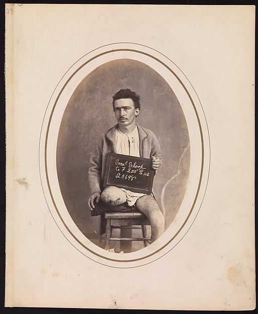 南北战争的最后一场伟大战役是对弗吉尼亚州彼得堡的围攻,这场残酷的战役导致邦联将军罗伯特·E·李于1865年4月9日投降。塞缪尔·肖普(Samuel Shoop)是第200名宾夕法尼亚州志愿者F连的一名25岁的士兵,他在竞选的第一天(3月25日)在斯特德曼堡(Fort Steadman)大腿上受了枪伤,随后被送往华盛顿特区的海伍德医院(Harewood Hospital)。他的腿被主治外科医生里德·布罗克瓦·邦特古(Reed Brockway Bontecou)截肢,他也拍了这张临床照片。它在一定程度上是为了作为一种工具来教授其他陆军外科医生,是美国早期专业使用摄影的一个极其罕见的例子。