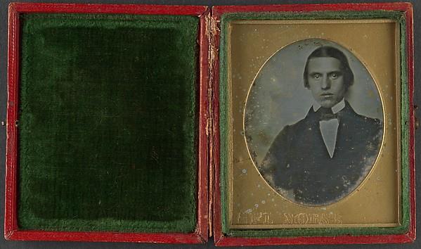 Samuel F. B. Morse met Louis Daguerre, the French inventor of photography, in Paris in the spring of 1839. Morse was the first American to see a daguerreotype and among the earliest artists in the United States to experiment with the new medium. This simple portrait of an unknown sitter, who clearly strains to keep his eyes open during the long, twenty-to-thirty minute exposure, is the only extant daguerreotype by Morse and one of the earliest photographs made in America. The strength of the portrait is in the young man's rapt expression, which seems to reflect a subtle awareness of his participation in a grand endeavor. The mindful sitter is one of the first in photography to return the gaze of the viewer.