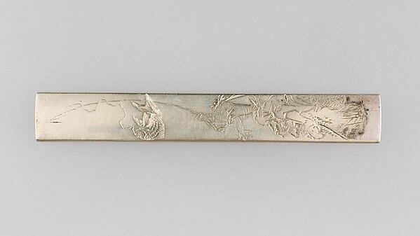 is a handle of a by-knife that is part of a sword mounting. It is kept in a slot on the reverse of a