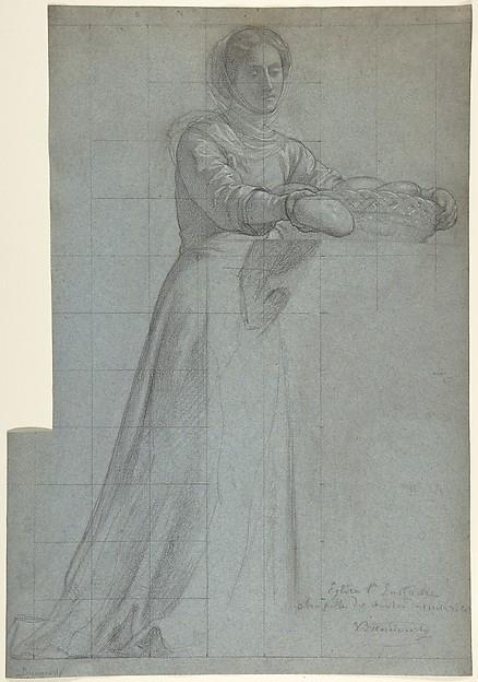 A Woman Distributing Bread from a Basket: Study for "Feed the Hungry," in the Chapel of the Seven Corporal Works of Mercy (Les Oeuvres de Miséricorde), Church of Saint-Eustache, Paris