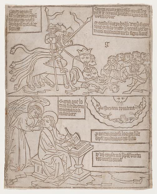 The Angels of the Euphrates Killing Mankind; and The Angel Preventing Saint John from Recording the Words of the Seven Thunders from an Apocalypse blockbook, 2nd edition