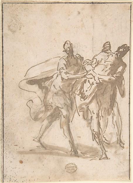 Three Figures (recto); Sketches of Kneeling Figures and Putti (verso)