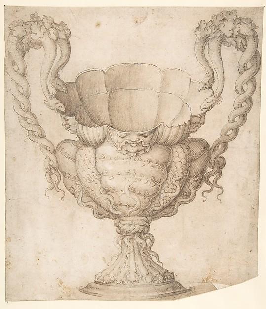 Design for a Decorated Drinking Cup with Floriated Heads around Large Mouth, Intertwined Serpents as Handles