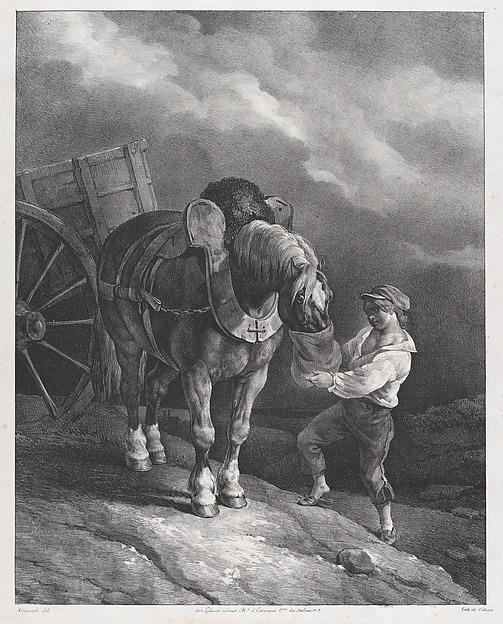 Boy Feeding a Cart Horse from a Nose Bag