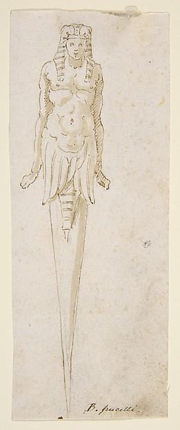 Design for Pointed Utensil with an Egyptian Style Figure on the Handle