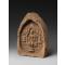 Such plaques were made of clay from sacred pilgrimage sites and hence had intrinsic power as relics for pilgrims. The Buddha sits in a temple like the one at Bodhgaya, where he reached enlightenment; surrounding him is a forest of stupas and below is the same ye dharma verse found on the Buddha from Nalanda outlining the path to enlightenment, or Buddhist dharma.