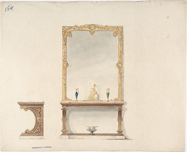 Design for Pier Table and Gold Mirror: Front and Side Elevations