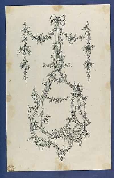 Design for a mirror with sconces. Not published in Thomas Chippendale's 'Gentleman and Cabinet Maker's Director'.