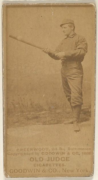 Greenwood, 2nd Base, Baltimore Orioles, from the Old Judge series (N172) for Old Judge Cigarettes