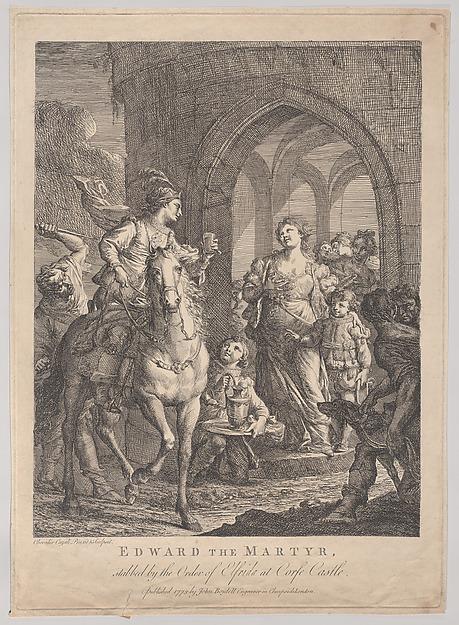 骑在马背上的殉道者爱德华国王此刻即将被身后的人谋杀。