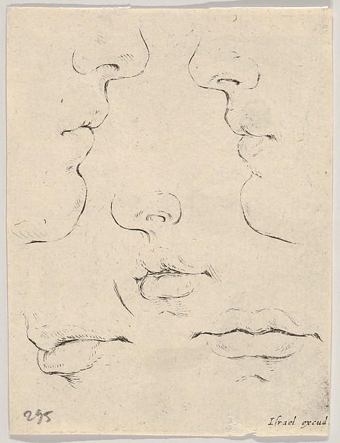 Plate 4: two profiles and three mouths, from 'The Book for Learning to Draw' (Livre pour apprendre à dessiner)