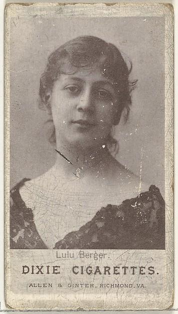 Lulu Berger, from the Actresses series (N67) promoting Dixie Cigarettes for Allen & Ginter brand tobacco products