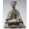 Pottery figures of entertainers often accompanied the deceased in the afterlife. Here, a female dancer performs the popular “seven dish dance,” tapping dishes with her feet as musicians play a zither and clap. One dish, the only surviving example of the original set of seven, rests under the dancer’s left foot.