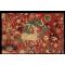 这是一小群完全由丝绸编织的地毯之一,每平方英寸约800节,代表了16世纪伊朗的最高生产水平。与这一组中的其他花卉和几何地毯不同,这一杰出的例子展示了绘画手法,动物在开花植物的背景下作战的图像。动物种类包括狮子、老虎和公羊,以及借鉴中国艺术的斑点龙和有角的鹿类动物。类似的图像出现在同一时期制作的手稿绘画和漆书上。