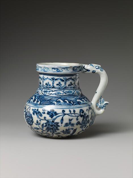 Despite the charming dragonfish handle, the shape of this tankard is not Chinese; it is based on Islamic metalwork, and was made for export.