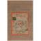 这个戏剧性的场景描绘了一个王子刺伤一只受伤的狮子,因为他的马把牙齿沉入狮子的脖子。在紧密缠绕的头巾的基础上,前面有一个厚厚的凸起和一个扇形的末端,在金色地面上用花朵,这幅画可以追溯到 1690 年代或 18 世纪初。一个签名会出现在马肚子下面隐约可见的漩涡装饰中,但它已经消失得难以辨认。它可能给出了艺术家谢赫·阿巴西(Shaykh'Abbasi)的名字,他以这种有色绘画风格工作,背景是蓝色的山丘。画作上方和下方的大胆的nasta'liq书法由阿里·里扎·阿巴西签名,他是沙阿阿巴斯(1587-1629年在位)图书馆馆长。