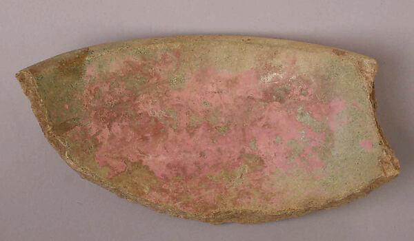 This ceramic fragment was excavated in Ctesiphon, the Sasanian metropolis and administrative capital conquered by Arab Muslim armies in 637. The city continued to be inhabited throughout the era, when it was known in Arabic as al-Mada’in, or "the cities", because of the expansive area it encompassed. Arab and Persian historians and poets indulged in describing al-Mada’in/Ctesiphon’s grand monuments. Muslim rulers also celebrated the glory of these monuments, which through time had acquired symbolic significance due to their association with the city’s imperial past. This was the case of the Taq-i Kisra, an impressive colossal ivan (a vaulted hall with one side open) that was partially dismantled to reuse its bricks in caliphal buildings in the new capital of Baghdad.