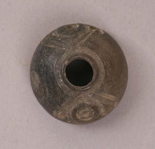 The dot-in-circle motif recalls designs presumed to be of magical significance, most likely an abstract eye to ward off the evil-eye, which serves an apotropaic function. Easily reproduced with a tool and visible in many cultures and times, this symbol may have lost its meaning, and become simply a decorative pattern, or may have one that we have not yet discovered.