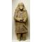 The ornamented headdres, arms, and rich vestments of this figure suggest that it most likely represents a sovereign’s personal guard, viziers or amir. Probably meant to decorate the reception hall of a ruler’s court, be it the Seljuq sultan or one of his local vassals or successors, figures like this one would parallel and enhance actual ceremonies in the very setting in which they took place. Recent analyses have proven that a traditionally-made gypsum plaster is consistently employed on these figures and on archaeological stuccoes. This figure also displays integrated restoration of the first half of the twentieth century, including additions in a more refined gypsum, and modern pigments (some of the reds and synthetic ultramarine blue).