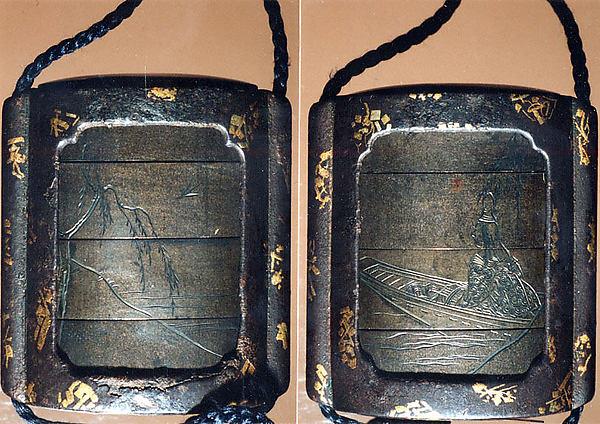 案例(Inrō),图案为船上的宫廷夫人(正面);柳树(浅草)(反面)