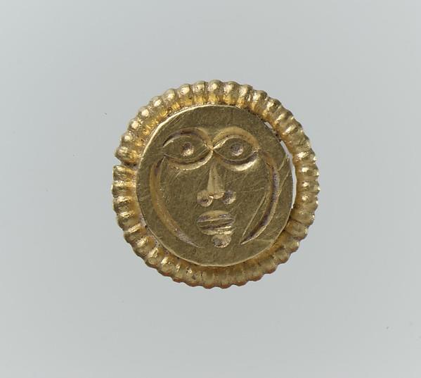 This group of objects was found in the grave of a Langobardic horseman, who was buried in his warrior dress, with weapons, shield, helmet, and the fittings for his horse. What remains are the many gold pieces that would have ornamented his clothing and equipment, and they attest to the great wealth of the Langobardic aristocracy within a generation of settling in Italy.